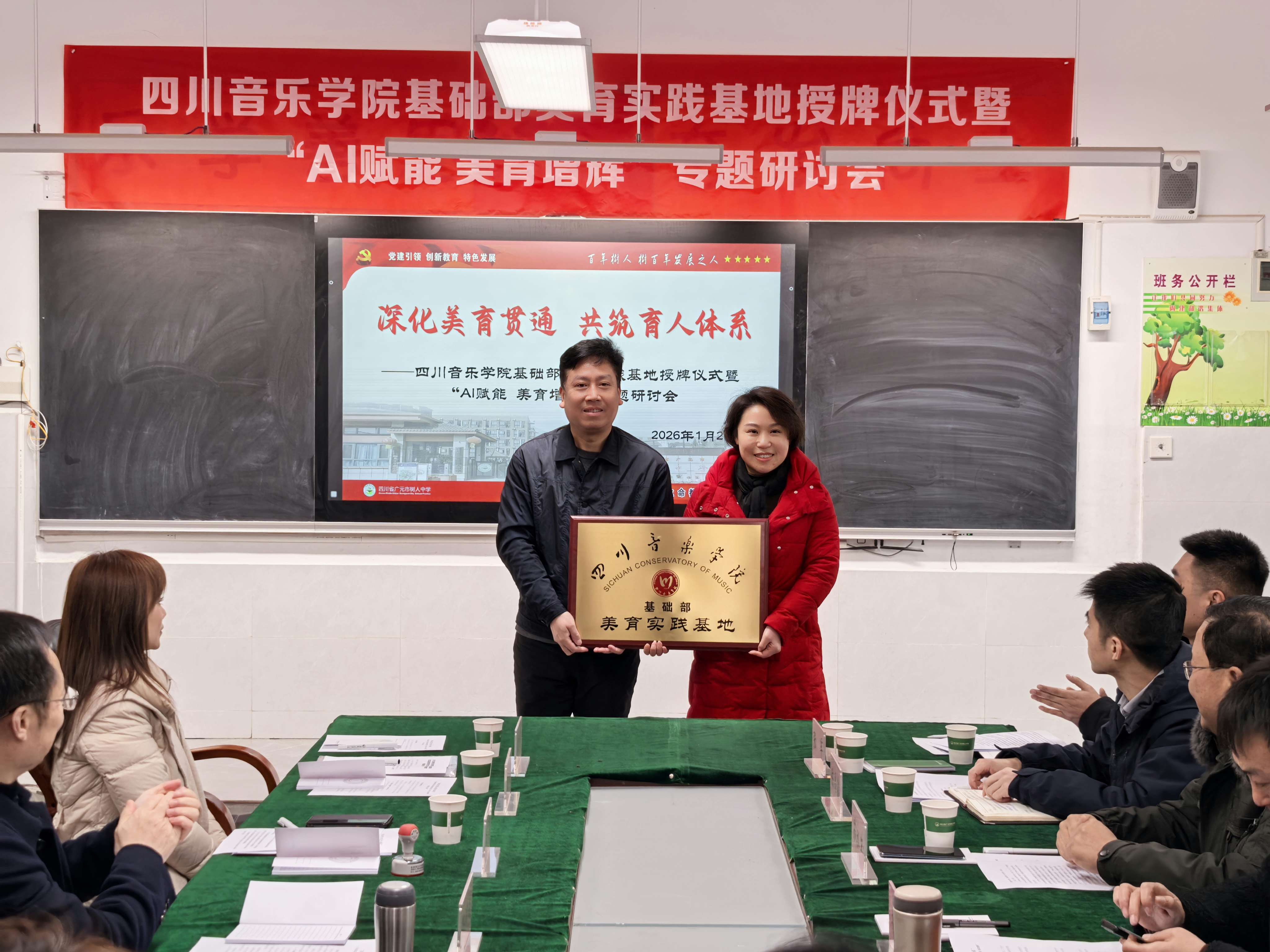 1月21日,四川音乐学院基础部美育实践基地授牌仪式在广元市树人中学隆重举行。本次活动以“深化美育贯通,共筑育人体系”为主题,聚焦“AI赋能,美育增辉”,旨在推动高校与中小学美育协同发展,探索新时代“五育并举”的校本化路径。